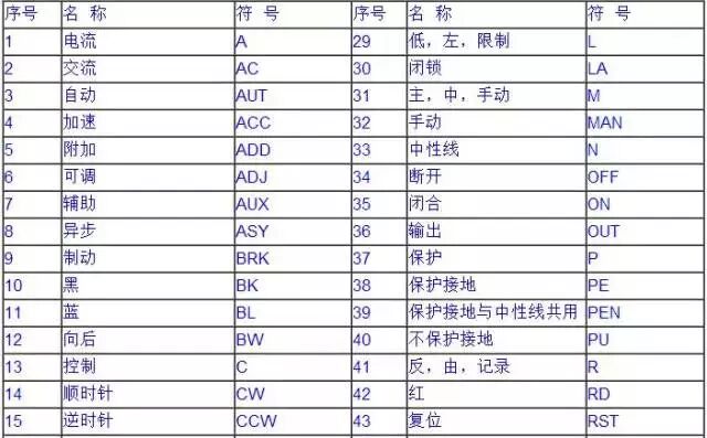 文字符号通常由基本文字符号、辅助文字符号和数字组成。用于按提供电气设备、装置和元器件的种类字母代码和功能字母代码。