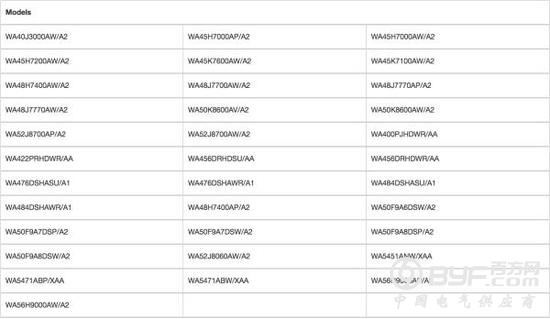 此次美国召回的受影响三星洗衣机型号列表