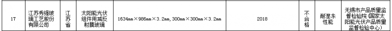本次共抽查了天津、山西、江苏、浙江、安徽、福建、河南、广东等8个省、直辖市18家企业生产的18批次太阳能光伏组件用减反射膜玻璃产品。依据JC/T 2170-2013(2017)《太阳能光伏组件用减反射膜玻璃》标准的要求,对太阳能光伏组件用减反射膜玻璃产品的碎片状态、霰弹袋冲击性能、光学性能、耐洗涮性能、耐中性盐雾性能、耐湿冻性能、耐紫外性能等7个项目进行了检验。抽查发现有3批次产品耐湿冻性能项目不符合标准的规定。