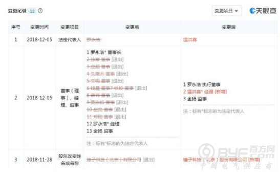 此外,锤子数码的朱萧木、钱晨、唐岩、吴泳铭、郑刚等10位董事退出,同时罗永浩从董事长转任执行董事,经理一职也由新的法定代表人温洪喜担任。