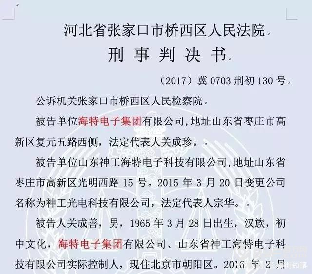 近日,中国裁判文书网公开了海特电子集团有限公司、山东神工海特电子科技有限公司单位行贿罪一审刑事判决书,关成善犯单位行贿罪获刑一年六个月缓刑两年,王保安的这段秘闻也被公之于众。2018年12月12日,河北张家口桥西区法院作出一审判决,因犯单位a行贿罪,海特电子集团、山东神工海特电子科技公司,分别被处罚金80万,实际控制人关成善获刑1年半、缓刑2年。