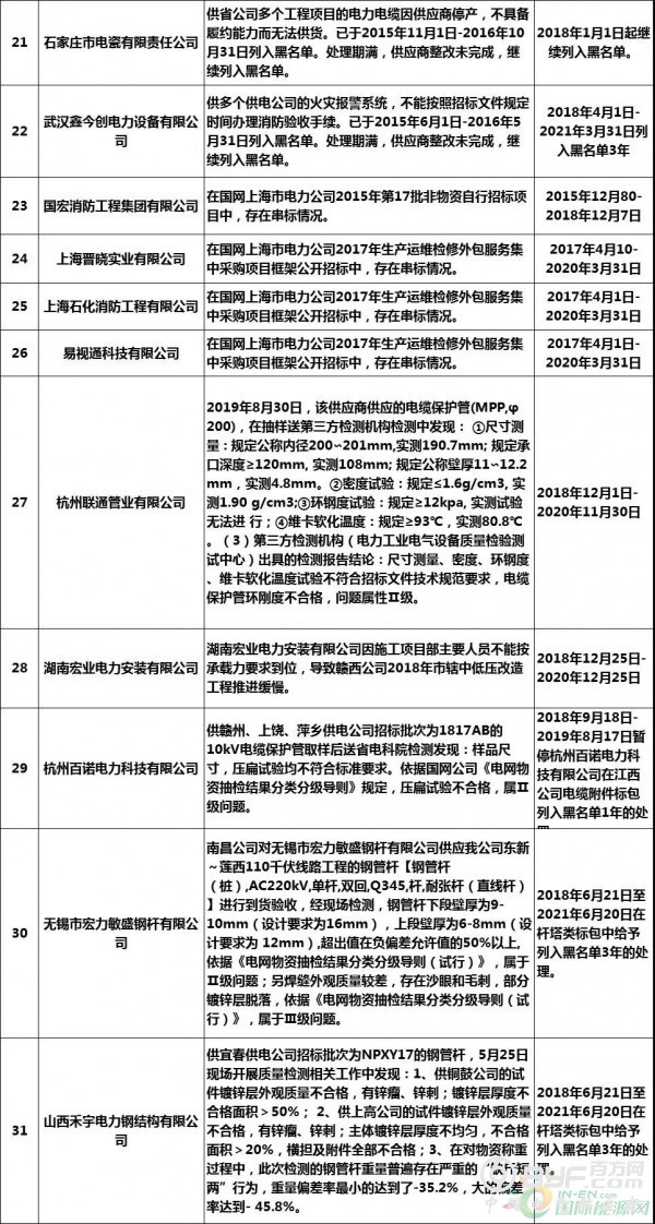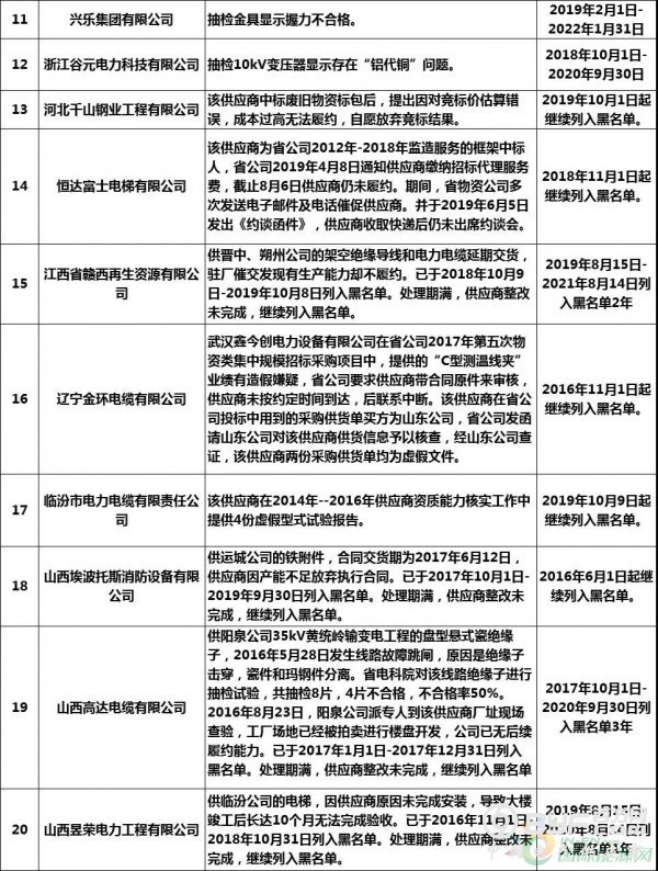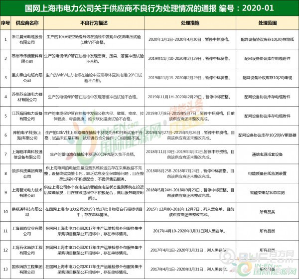 此外,国网也根据供应商不良行为的严重程度,作出了相应的处理。其中,282家企业里共有31家企业被处以列入国网黑名单的处罚,其中包括国网浙江13家、国网山西9家、国网上海4家,国网江西5家。