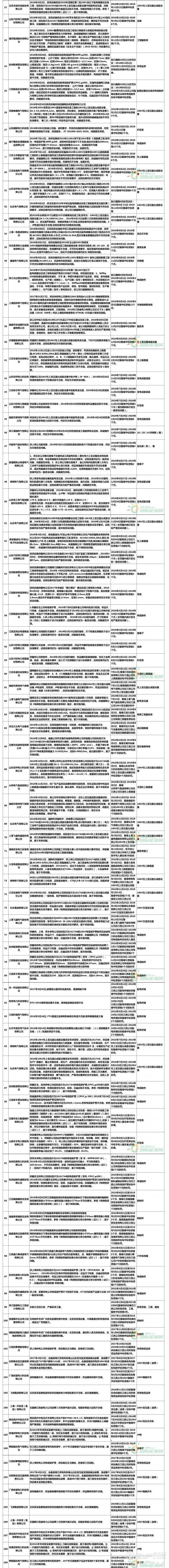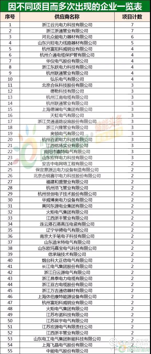 据统计,在282家企业中,共有55家企业有1种以上的相关产品上榜,这也使得其在本次榜单中多次出现。其中,被通报项目种类最多的前三名为浙江谷元电力科技有限公司(7项),浙江浙通管业有限公司(7项)、河北众能电力器材有限公司(6项) 。