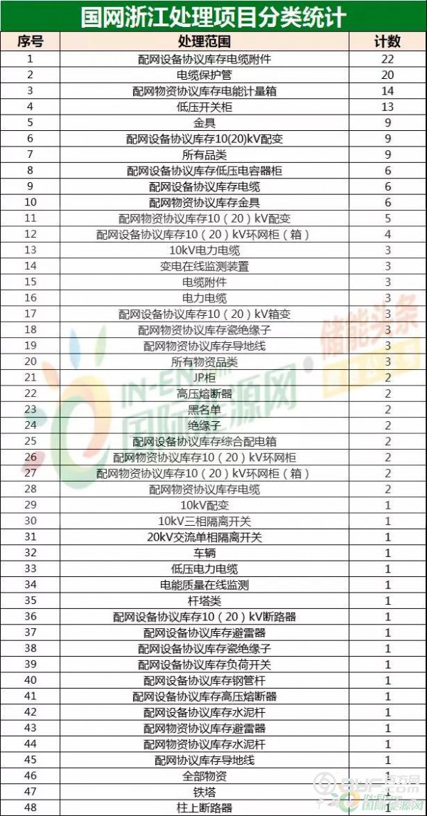 国网浙江本次共公示了183个项目,涉及企业116家,而据统计,183个项目中,共涉及48种问题,而出现问题最多的部分便是配网设备协议库存电缆附件,共有22个项目是因此被通报,可以说是本次国网浙江供应商不良行为名单的重灾区。