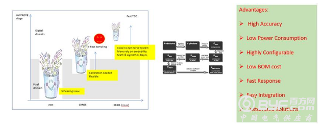 脉冲式ToF传感器的优势明显,具有精确度高、功耗低、BOM(物料清单)成本低、响应速度快等优点,并且配置性高、集成度高,可以根据客户需求进行定制。