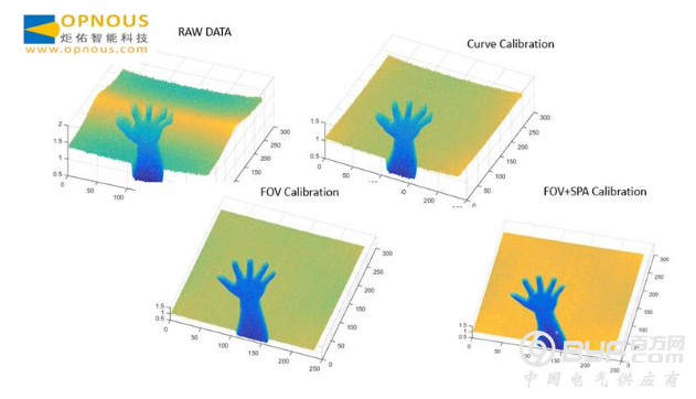 炬佑智能建有完整的实验室开发中心,包括全自动激光雷达滑轨的标定和相应的光学设备。刘洋先生很自信地告诉现场观众:“我们对ToF传感器做校正,对模组做很严格细致的确认。我们的算法相比传统算法,是传统算法所需资源的三分之一甚至更少。这对实际的产品,特别是小型化模组的实现极其关键。”刘洋先生在研讨会上为大家展示了经过自有算法进行曲面校正和FOV(视场角)校正的测试结果。可以看到,原始数据的拟合平面图并不平整,经过校正后,翘曲度明显改善。