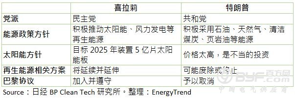 EnergyTrend分析师蔡旻纯指出,11月8日当天不只是美国总统大选日,佛罗里达州、华盛顿州、内华达州等部分州政府也同时进行可再生能源相关政策的公投,例如直接碳税、电业自由化等。在奥巴马政府的领导下,美国推动可再生能源已累积出一定的成果,但若特朗普当选且确切执行其能源政策,就意味着美国在过去几年间建立起来的可再生能源政策将全部重来。