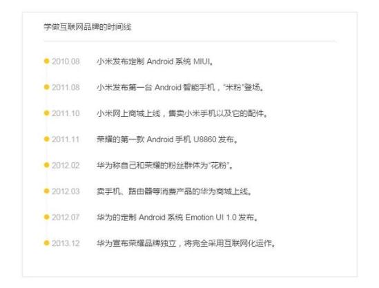 华为也是大公司里第一个照搬小米模式的,下面那个列表可以一一对应。