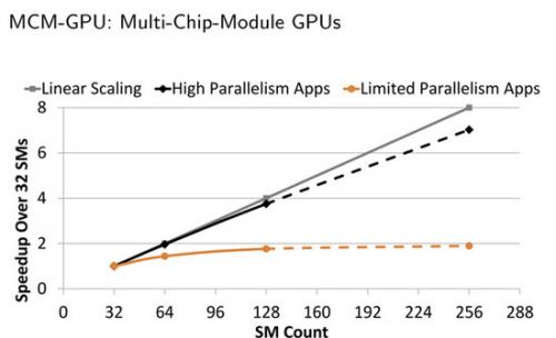 NVIDIA表示MCM-GPU与今天的最大GPU核心相比,可以缩小40-60%的核心面积,将来还可能会用上10nm或者转折性的7nm工艺制造。