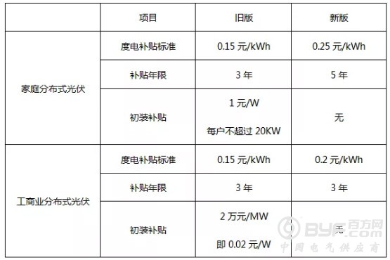 概括地说,新版补贴方案提高了度电补贴标准,延长了家用光伏项目的补贴年限,同时取消了初装补贴。