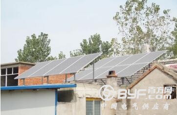 贫困户王献华家的由两大块共12片光电板组成的屋顶光伏电站