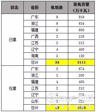 表1 各省份已建和在建核电站一览表