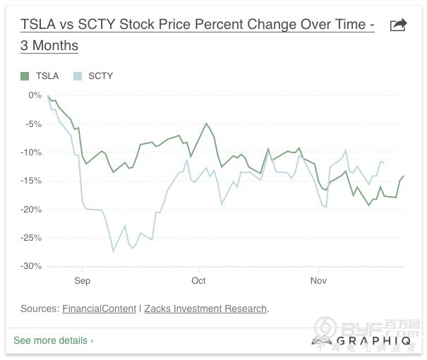 特斯拉和SolarCity股价走势对比