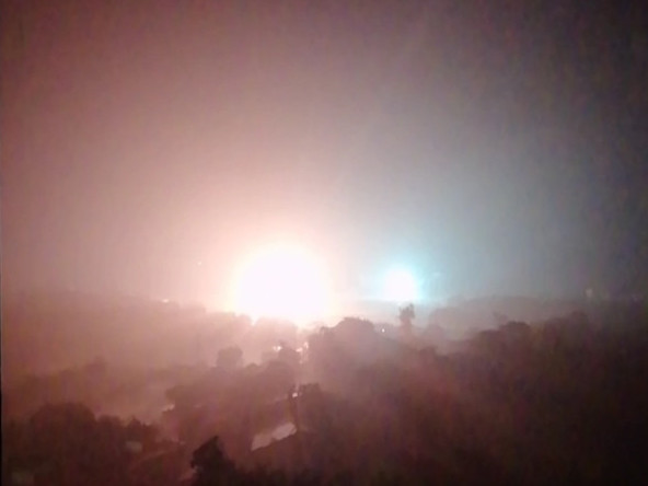 通过图片看到,黑夜被一道火光划破,似乎真如爆料者所说有两台变压器着火了。