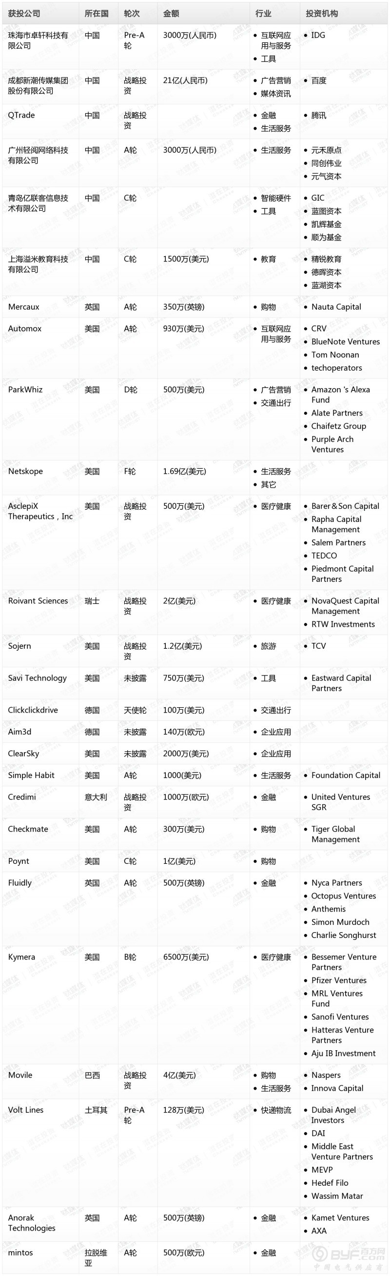 表:2018年11月14日 海内外科技领域投融资事件(钛媒体Pro制表)