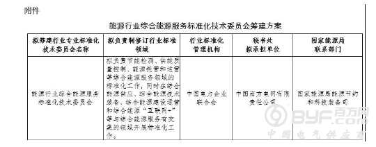 中国电力企业联合会报来《关于成立能源行业综合能源服务标准化技术委员会的请示》(中电联标准〔2018〕281号),根据《能源领域行业标准化技术委员会管理实施细则(试行)》有关规定,现请你们结合职能认真研究,主要就拟筹建能源行业标准化技术委员会的名称、负责领域、秘书处承担单位等提出意见及建议,并于2019年1月10日前反馈至我局能源节约和科技装备司。