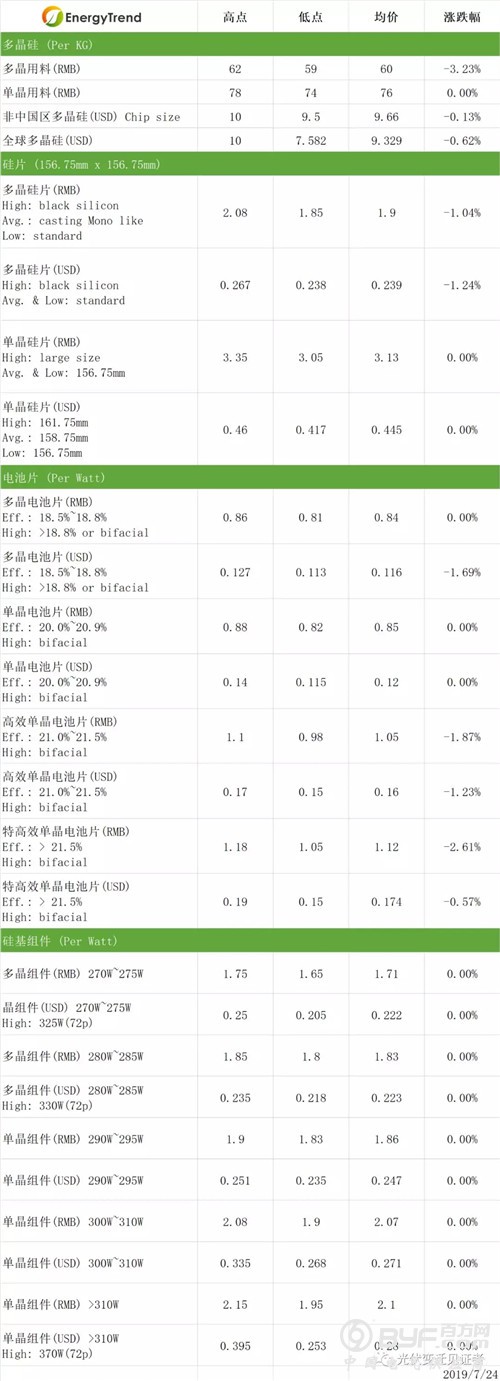 本周光伏产业链最新价格走势图(7月29日)