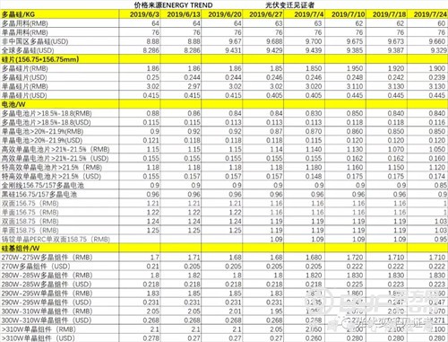本周光伏产业链最新价格趋势图新鲜出炉: