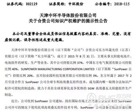 中环股份持东方环晟40%股份,为东方环晟的最大股东,Sunpower持股20% ;东方环晟于2017年2月引进合作方SunPower公司全球专利高效叠瓦组件技术,为国内唯一取得合法知识产权许可授权的企业。