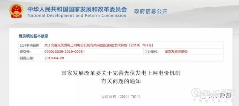 直到2019年4月30日国家发改委才发布《关于完善光伏发电上网电价机制有关问题的通知》,5月30日国家能源局才迟迟发布《国家能源局关于2019年风电、光伏发电项目建设有关事项的通知》。