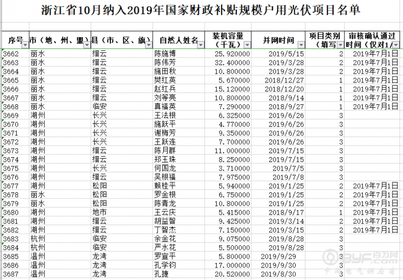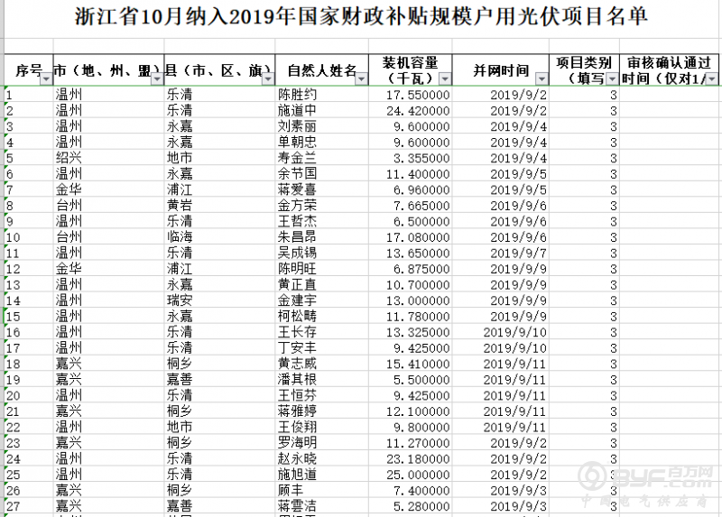 9月入围41MW!浙江公布纳入国补户用光伏项目名单!