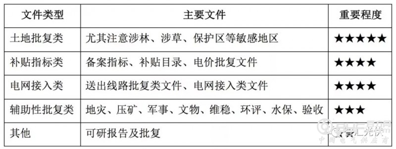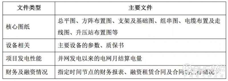 2)合规性文件项目前期开发阶段(前期手续、政府批文)、施工准备阶段(土地和送出等相关文件)、并网验收阶段的核心材料必须齐全
