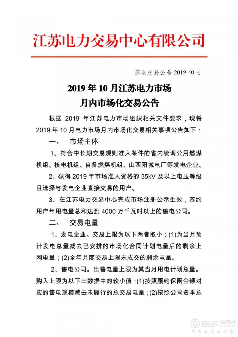 江苏电力:开展10月电力市场月内市场化交易:申报时间10月28日