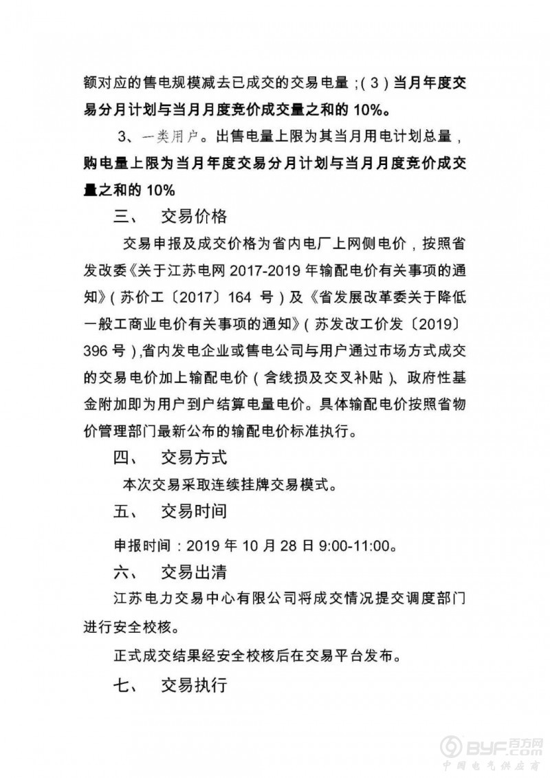 江苏电力交易中心近日开展10月电力市场月内市场化交易,申报时间10月28日,采取连续挂牌交易模式。详情如下: