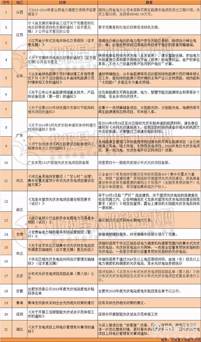 此外,相关部门就电力市场改革、简化光伏用地手续等方面出台了政策。