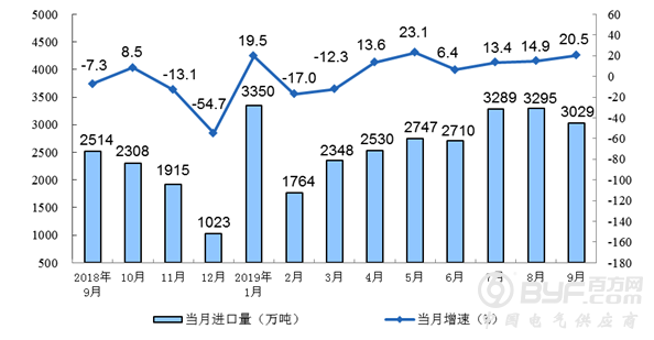 9月份,进口煤炭3029万吨,同比增长20.5%,环比减少266万吨。前三季度,进口煤炭25057万吨,同比增长9.5%,比上半年加快3.7个百分点。