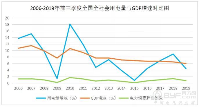 电力工业在支撑经济社会发展的同时,用电市场也紧密依赖经济发展,随着我国经济社会的发展和能源结构转型,经济发展和电力运行之间的关系也在不断调整。2019年前三季度我国经济和电力关系是怎样一番互利的景象呢?