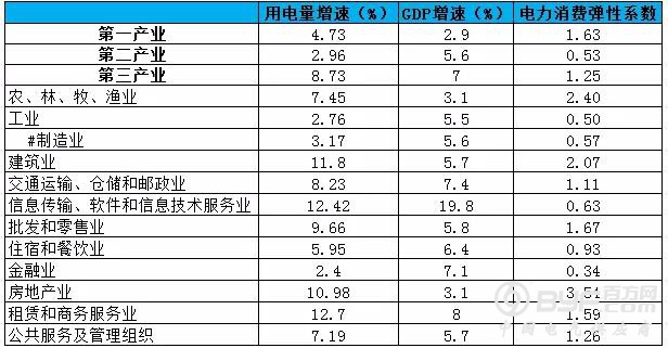 2019年前三季度,我国国内生产总值为450933亿元,同比增长6.2%;全国全社会用电量为53442亿千瓦时,同比增长4.4%。具体到各行业用电及GDP增速,请看下表。