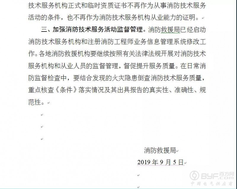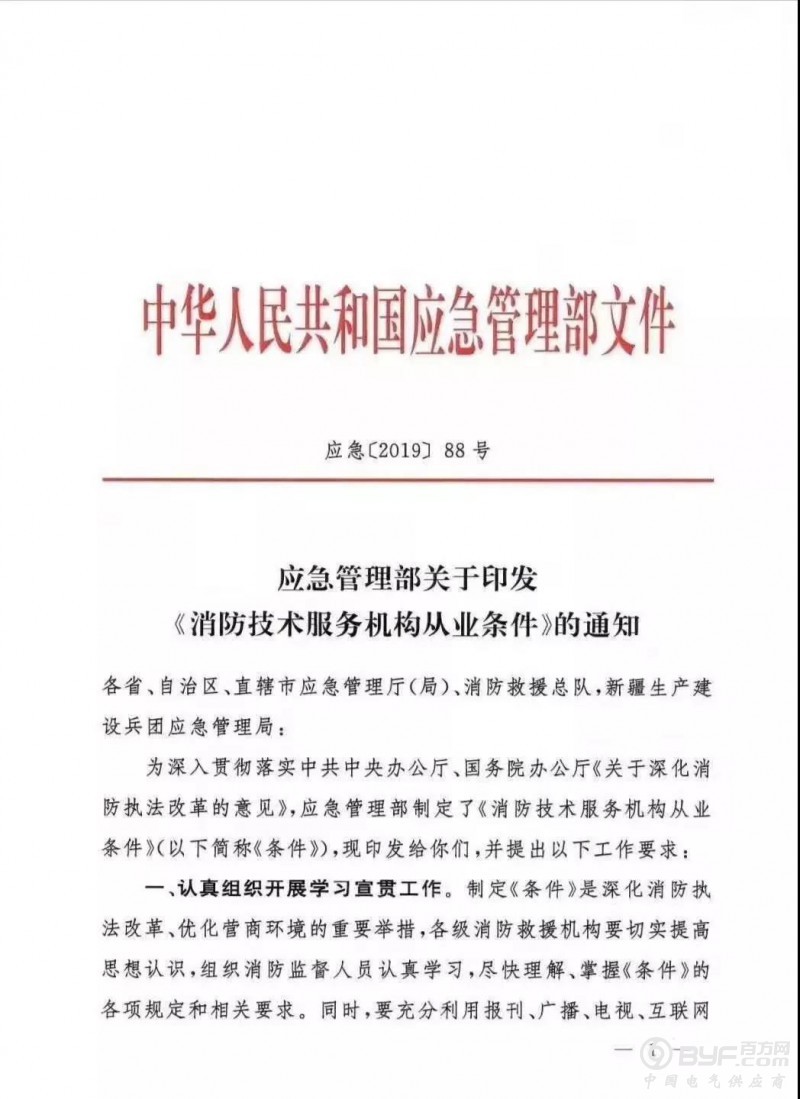 2019年10月21日山东省消防救援总队公布《关于贯彻消防技术服务机构从业条件的通知》,通知明确提出: