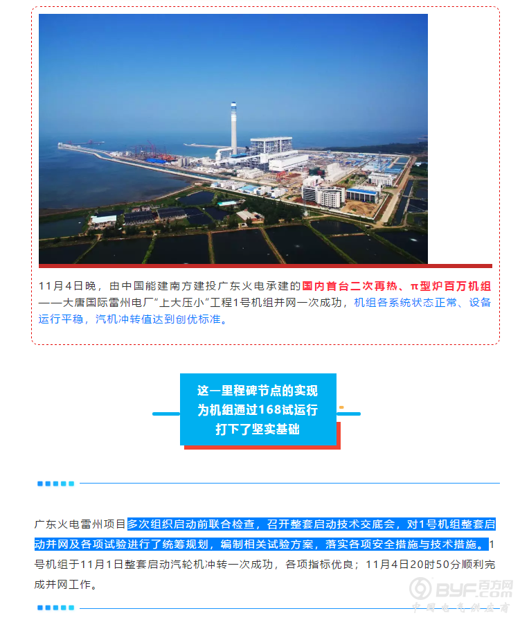 喜报!广东火电承建大唐雷州百万机组电厂项目1号机组成功并网