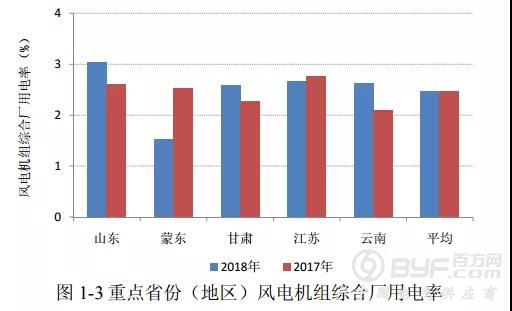 从全国看,2018年风力发电平均综合厂用电率为2.52%,同比下降0.39个百分点。其中湖北最高,为5.03%;吉林最低,为1.49%。详见附件 1-2。