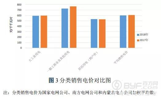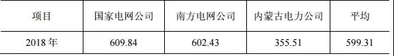 2018年,电网企业平均销售电价为599.31元/千千瓦时,同比下降1.61%。