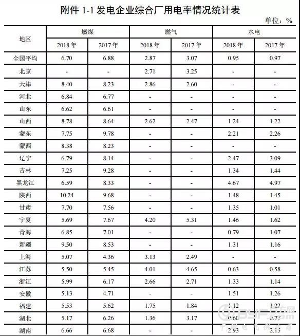 从全国(不含西藏,下同)看,2018年燃煤发电平均综合厂用电率为6.70%,同比下降0.18个百分点。其中陕西最高,为10.24%;上海最低,为5.07%。详见附表 1-1。