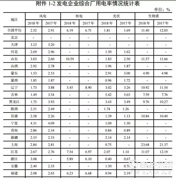 从全国看,2018年光伏发电平均综合厂用电率为1.81%,同比上升0.12个百分点。其中吉林最高,为5.42%;浙江最低,为0.40%。详见附件 1-2。