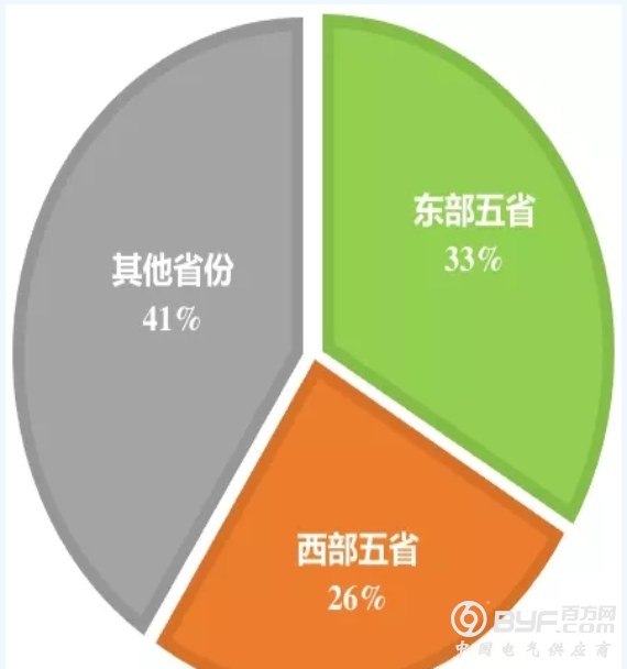 我们从东部、西部各选取5个省份的装机数据作对比,就可以看得出来!