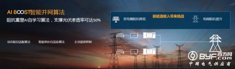 在最新推出的AI BOOST智能光伏6.0方案中,华为在业内首次引入阻抗重塑的AI自学习算法,融合动态阻尼适配算法,智能串补自适应算法、主动谐波抑制算法等多种领先并网算法,通过AI自学习动态地调整电站本身的电气特性来匹配电网,使电网保持稳定,不脱网。引领光伏发电从“适应电网”走向“支撑电网”。