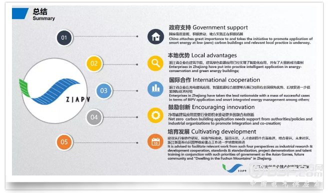 目前国家高度重视,积极推动低(零)碳工作,地方实践正在积极拓展。浙江省企业在建筑节能、建筑绿色能源方面已经实现智能化应用,并有大量的成功案例。陆川提到,浙江省企业在光电建筑应用、智慧能源综合管理等方面已经具有全国领先优势,展望未来,后续要进一步借鉴国际优秀经验;净零碳建筑应用需要行业组织来推动更多的融合和创新。在培育发展方面,建议从行业协作研发、标准与标准化、项目示范、人才培训四个方面推进,结合亚运、未来社区、浙江版富春山居图等政府重点工作进一步培育和推进。