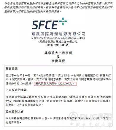 近日,顺风清洁能源发布公告:于11月15日,卖方(公司的全资附属公司)与买方订立11份买卖协议,据此,卖方出售,而买方购买标的股权(即各目标公司的100%股权),总代价为