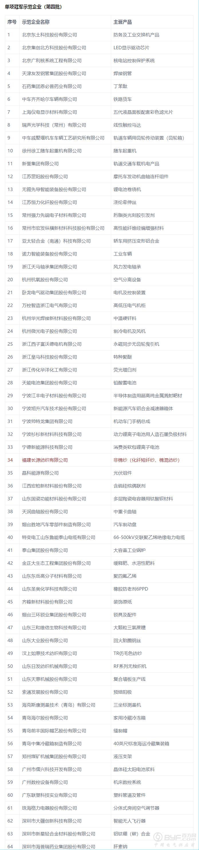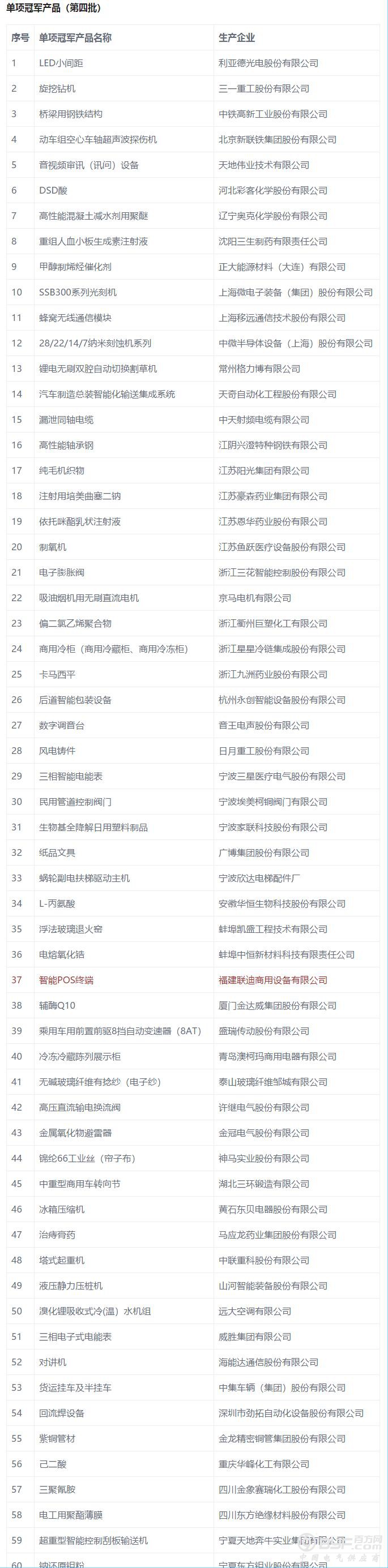 第四批制造业单项冠军企业(产品)