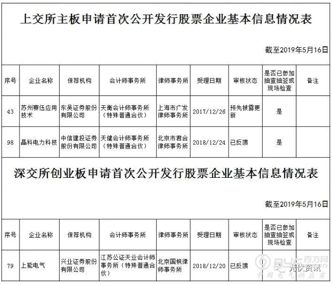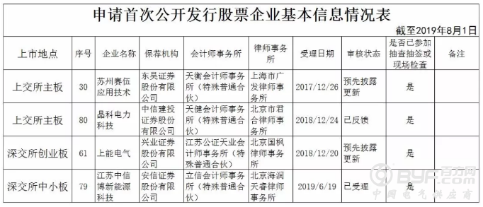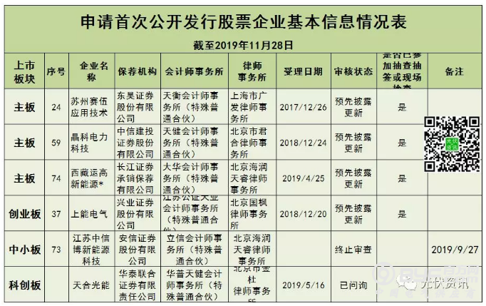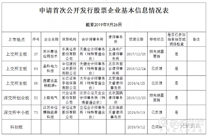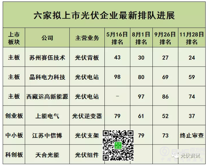 两个月的时间内,赛伍排名由27位上升至24位,上升3位;晶科由69位上升至59位,上升10位;西藏运高由86位上升至74位,上升12位;上能由52位上升至37位,上升15位;中信博终止审查,天合光能最新的更新时间为2019年10月17日。