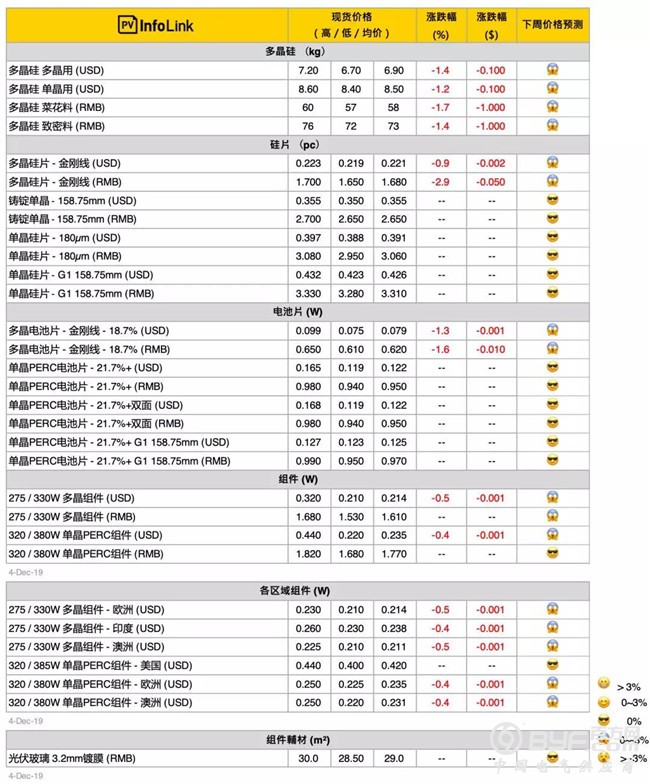 PV Infolink现货价格信息中,人民币价格皆为中国内需报价,而美金显示之价格则为非中国地区的海外价格,并非人民币直接换算美金。