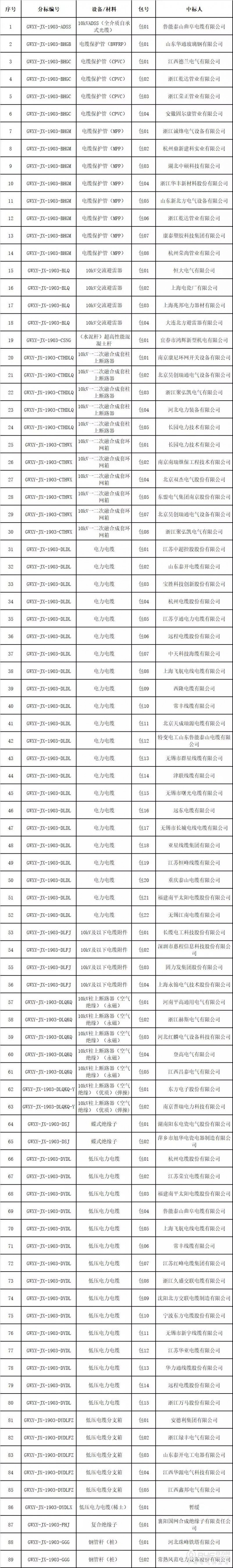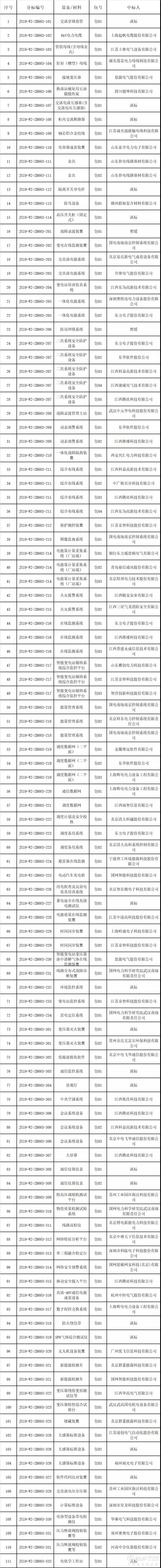 国网江西省电力有限公司2019年第三次物资招标采购中标结果公告