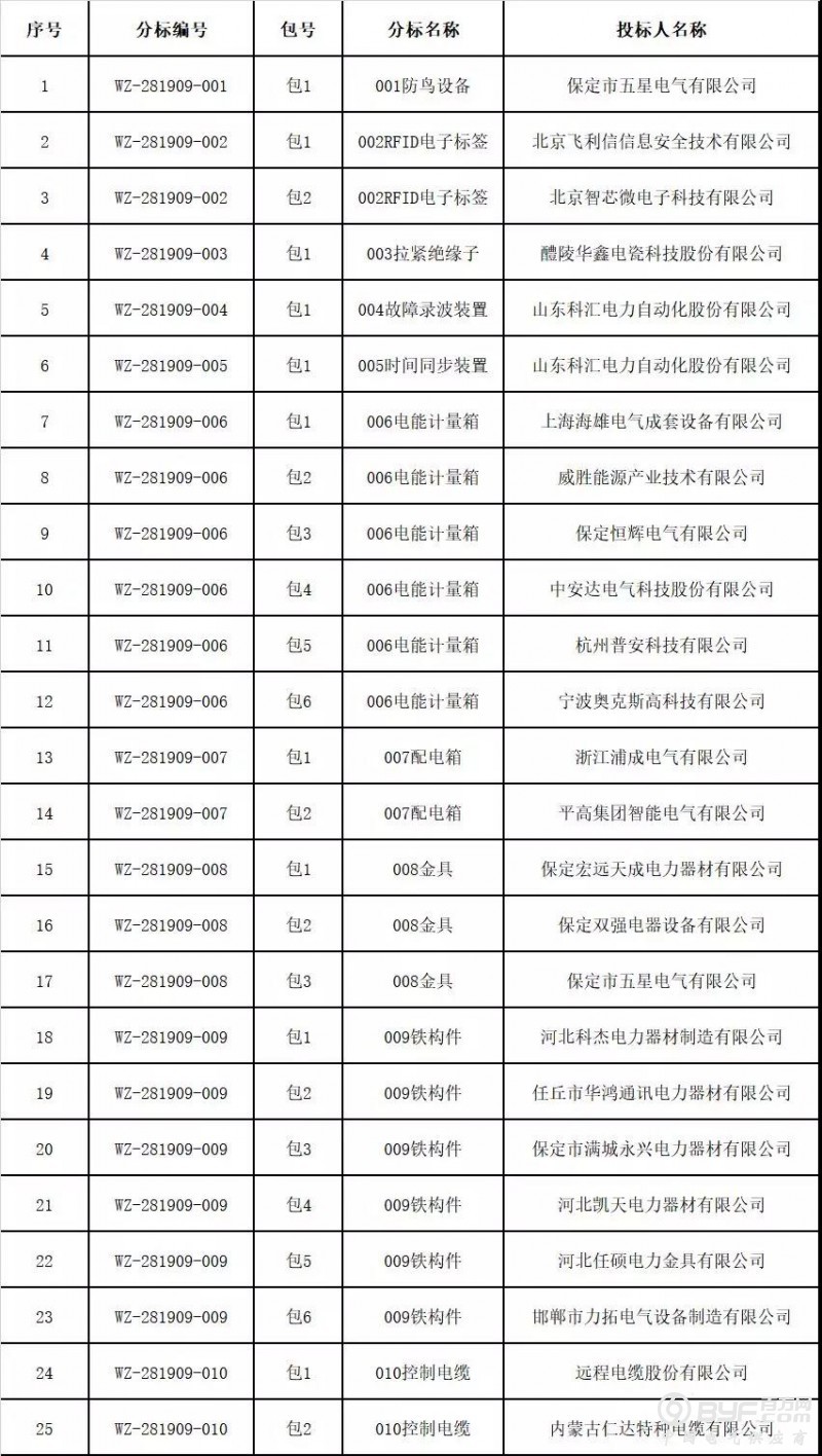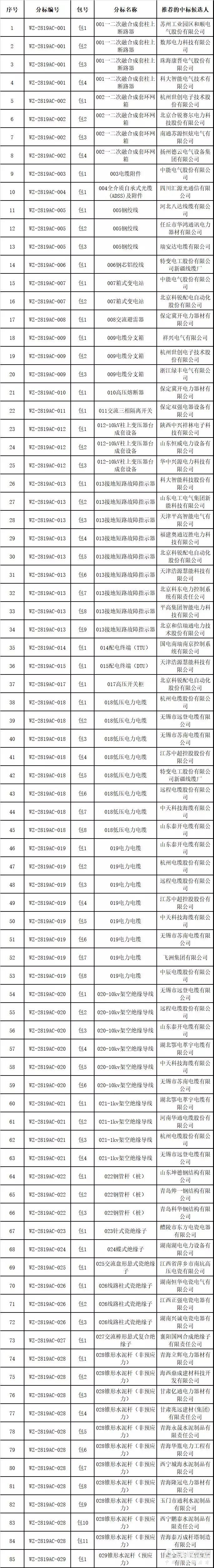 国网青海省电力公司2019年国招第三次(2819AC)配网物资协议库存招标项目中标人名单
