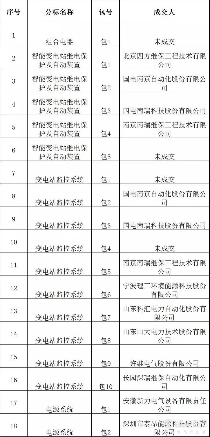 国网安徽省电力有限公司2019年第四批物资单一来源采购项目成交人名单