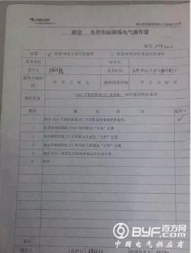 (五)碧宗光伏电站现场运行人员风险辨识能力较弱,培训不足,技能水平低碧宗光伏电站现场运行人员风对《安规》、《电网调度管理条例》、《中国南方电网电力调度管理规程》、《云南电网调度运行操作管理规定(2017 版)》、《曲靖电网调度管理规程》、《碧宗光伏电站并网调度协议》等执行依从性较低,操作人发现操作异常时,未汇报情况;操作票填写不
