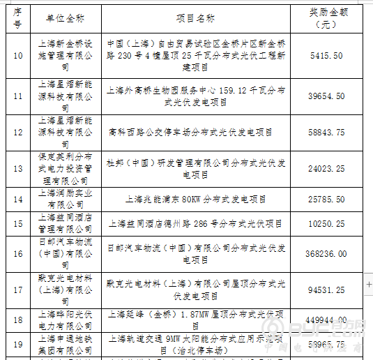经市电力公司统计、申请,并委托市节能减排中心评估,拟将以下项目纳入2019年度可再生能源专项资金拨付计划(草案),现予以公示。公示日期:2019年12月6日至2019年12月9日,公示电话:021-23119468,021-23113905。